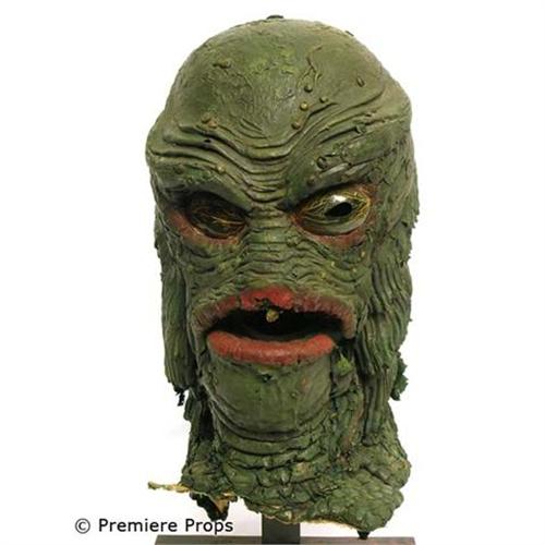 The Revenge of the Creature - A priceless piece of movie history, this is the extremely rare, very iconic, only remaining creature mask, known as "The Gill-man", from the 1955 feature film, "The Revenge of the Creature," (sequel to "The Creature from the Black Lagoon"). This hero mask is made out of foamed latex and is hand painted. This full head mask was hand crafted by legendary Bud Westmore and worn by stuntman, Tom Hennesy, who almost drowned during the filming of this very popular sequel and who used this mask under water during filming. The gills open and close. There are two hoses for air through the gills and mouth. It is fully in tact and in pristine condition. This mask has been handed down through the generations of the Westmore Family, and is an icon of the golden age of horror movies. It may be THE last surviving original mask from this era! Be the only collector to own this rare piece of history, and be sure to join the Westmore family as they receive their first star on the Hollywood walk of Fame in October. (WSM3000)
