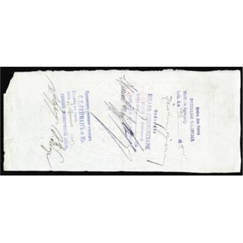 <style type="text/css"> body, td, th { font-family: Arial, Helvetica, sans-serif; font-size: 12px; color: #482424; margin: 0px; padding: 0px; } #header { background-image: url(http://www.bowersandmerena.com/ebay/images/template_v3_01.gif); clear: both; background-color: #590303; border-top-width: 2px; border-top-style: solid; border-top-color: #B38C4F; } #header #header_wrapper { height: 75px; clear: both; width: 800px; margin-right: auto; margin-left: auto; background-image: url(http://www.bowersandmerena.com/ebay/images/template_v3_03.gif); background-repeat: no-repeat; background-position: right; color: #F3EDCC; } #header #header_wrapper #header_logo { float: left; height: 75px; width: 444px; background-image: url(http://www.bowersandmerena.com/ebay/images/template_v3_02.gif); background-repeat: no-repeat; font-size: 10px; text-transform: capitalize; color: #B38C4F; } #header #header_wrapper #header_right { float: left; height: 75px; width: 356px; text-align: right; } #header #header_wrapper #header_right #headerLoginBtn { margin-bottom: 30px; } #header #header_wrapper #header_right input#txtSearch { color: #B49056; border: 1px solid #B49056; width: 175px; padding-top: 3px; padding-right: 3px; padding-bottom: 4px; padding-left: 3px; } #nav { height: 37px; background-image: url(http://www.bowersandmerena.com/ebay/images/template_v3_05.gif); clear: both; } #nav #nav_wrapper { height: 35px; width: 800px; margin-right: auto; margin-left: auto; border-left-width: 1px; border-left-style: solid; border-left-color: #B38C4F; } #nav #nav_wrapper a { padding-right: 15px; padding-left: 15px; border-right-width: 1px; border-right-style: solid; border-right-color: #B38C4F; height: 25px; padding-top: 10px; display: block; float: left; text-decoration: none; font-weight: bold; color: #5D0303; } #nav #nav_wrapper a:hover { color: #B38C4F; } #nav #nav_wrapper #search { float: right; padding-top: 7px; } #nav #nav_wrapper #search #txtSearch { font-family: Arial, Helvetica, sans-serif; font-size: 10px; text-transform: uppercase; color: #D2AE75; border: 1px solid #B38C4F; padding: 3px; } #content_bgd { background-image: url(http://www.bowersandmerena.com/ebay/images/template_v3_09.gif); background-repeat: repeat-y; background-position: center; padding-top: 15px; padding-bottom: 15px; background-color: #FBFBDB; } #content_wrapper { clear: both; height: auto; width: 800px; margin-right: auto; margin-left: auto; } .LotDetailWhite { line-height:normal; font-size:13px; font-family: arial,helvetica,sans-serif; color: White; font-weight: bold; } .LotDetailInformation { line-height:normal; font-size: 13px; font-family: arial,helvetica,sans-serif; } .LotDetailMessage { line-height:normal; font-size: 13px; font-family: arial,helvetica,sans-serif; color: red; } } tr.HeaderAuctionTitle td { color: #000000; font-weight: bold; padding: 2px; background-image: url(http://www.bowersandmerena.com/ebay/images/template_v3_05.gif); background-repeat: repeat-x; border-bottom-width: 1px; border-bottom-style: solid; border-bottom-color: #B38C4F; } table.AuctionSummary a, table.AuctionSummary a:link, table.AuctionSummary a:visited { color: #0000FF; text-decoration: none; } } td.tableHeaderLeft { border-left-width: 1px; border-left-style: solid; border-left-color: #B38C4F; } td.tableHeaderRight { border-right-width: 1px; border-right-style: solid; border-right-color: #B38C4F; } td.tableCellMiddle { border-left-width: 1px; border-left-style: solid; border-left-color: #B38C4F; border-right-width: 1px; border-right-style: solid; border-right-color: #B38C4F; padding: 5px; } tr.footer td { border-top-width: 1px; border-top-style: solid; border-top-color: #B38C4F; } </style> </head> <body> <div id="header"> <div id="header_wrapper"> <div id="header_logo"> </div> <div id="header_right"> </div> </div> </div> <div id="nav"> <div id="nav_wrapper"> <a href="http://www.bowersandmerena.com">Our eBayLive Auctions</a> <a href="#PaymentInfo">Payment Information</a> <a href="#ShippingInfo">Shipping Information</a> <a href="#About">About Bowers and Merena</a> </div> </div> <div id="content_bgd"> <div id="content_wrapper"> <table width="100%" border="0" cellpadding="5" cellspacing="0" class="AuctionSummary"> <tbody> <tr class="HeaderAuctionTitle" style="height: 25px;"> <td align="left" class="tableHeaderLeft" > </td> <td align="center" class="tableHeaderRight"> <span style="font-size: large;">Lot #2615. Imperial Russia. Revenue Imprinted Bills of Exchange, Checks or Drafts Quartet Dated 1864 to 1896.</span> </td> </tr> <tr> <td colspan="3" class="tableCellMiddle"> Lot of 4 checks, drafts or Bills of Exchange. Datelined 1864 to 1896. All are issued and filled out. Scarce early Russian fiscal items. VF+ to XF condition.