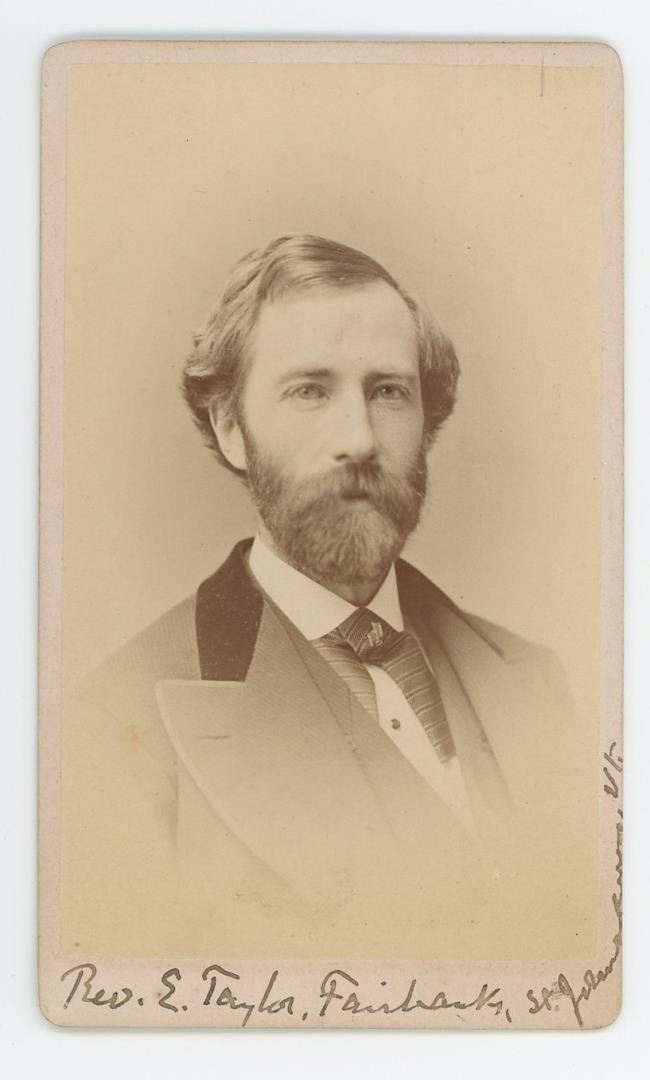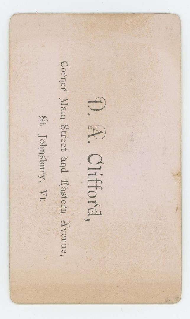 Noted at the bottom is E Taylor Fairbanks, St Johnsbury, VT. 4 1/8" by 2 1/2". Edward Taylor Fairbanks, the son of Joseph P. Fairbanks, who served as the pastor of the St. Johnsbury church. He was a graduate of Yale University and Andover Theological Seminary.