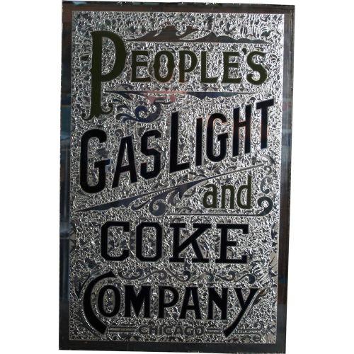 Reverse Glass Ad Sign "Peoples Gas Light & Coke" Original from a Warehouse Find 17 x 26 " not including frame