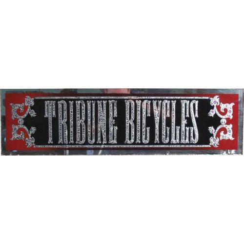 Reverse Glass Ad Sign "Tribune Bicycles" Original from a Warehouse Find