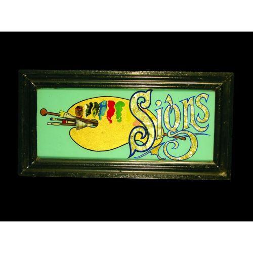 Reverse Glass Sign for a Sign Maker. Very early with mother of pearl lettering. Excellent condition. 25 1/2 X 12 1/2 inches.