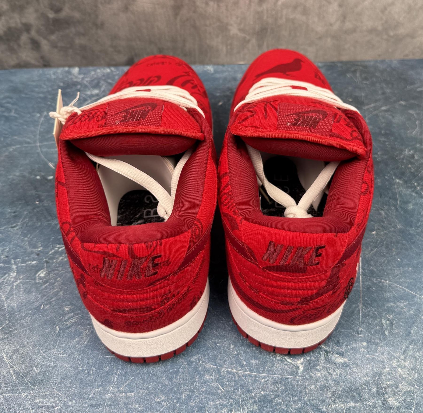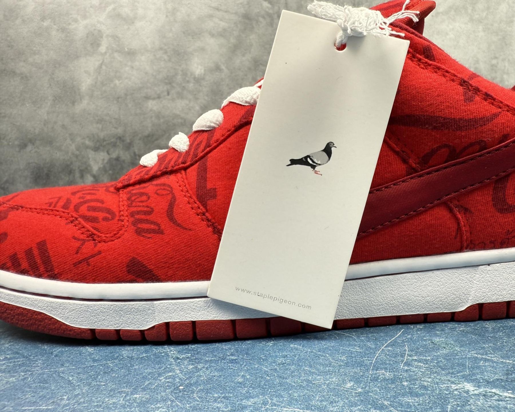 New in box. Size 10.5. Dunk Low Pro SB. Nike SB x Staple Pigeon x Coca Cola x Reverse Land. Purchased directly from Reverse Land, includes original shipping label from Staple.