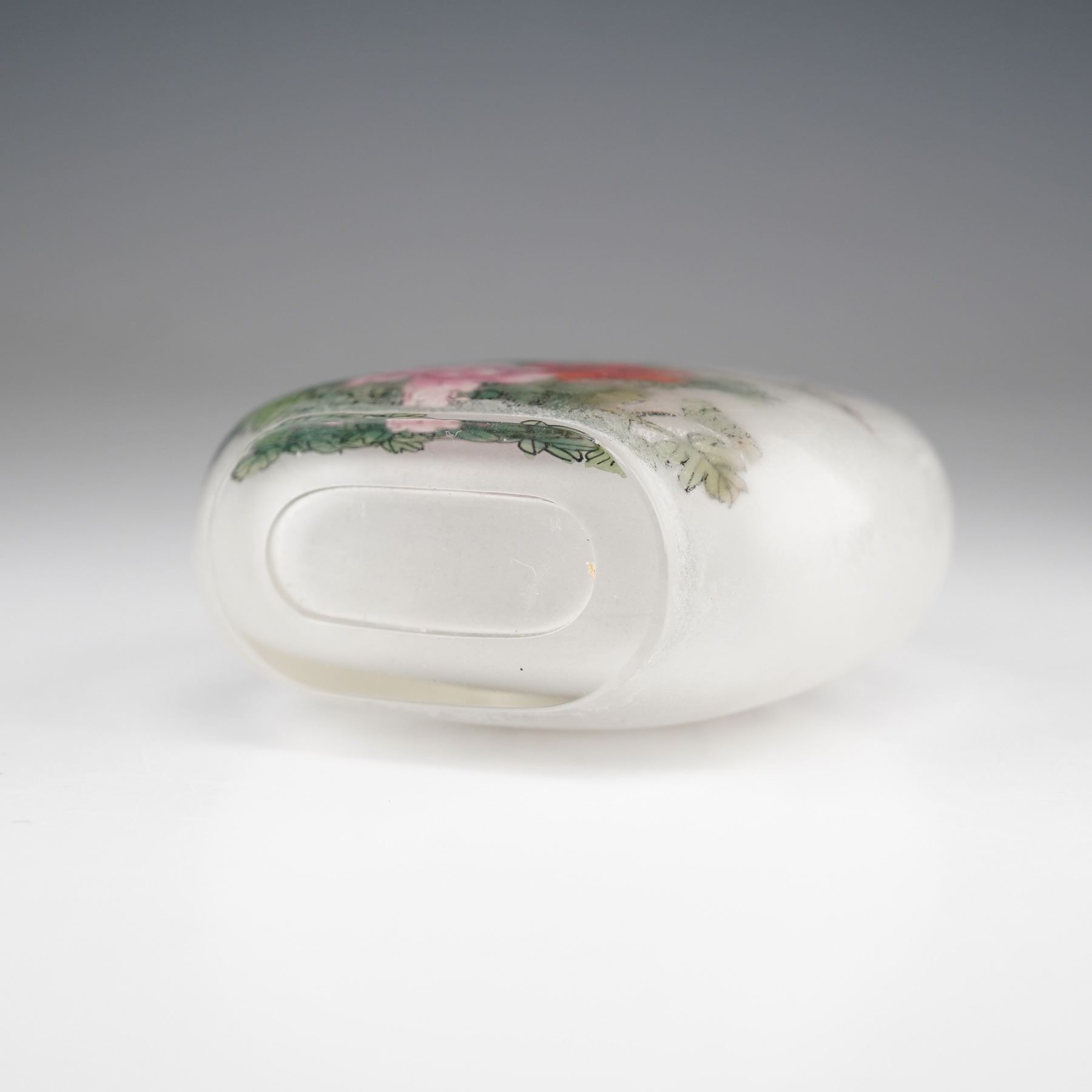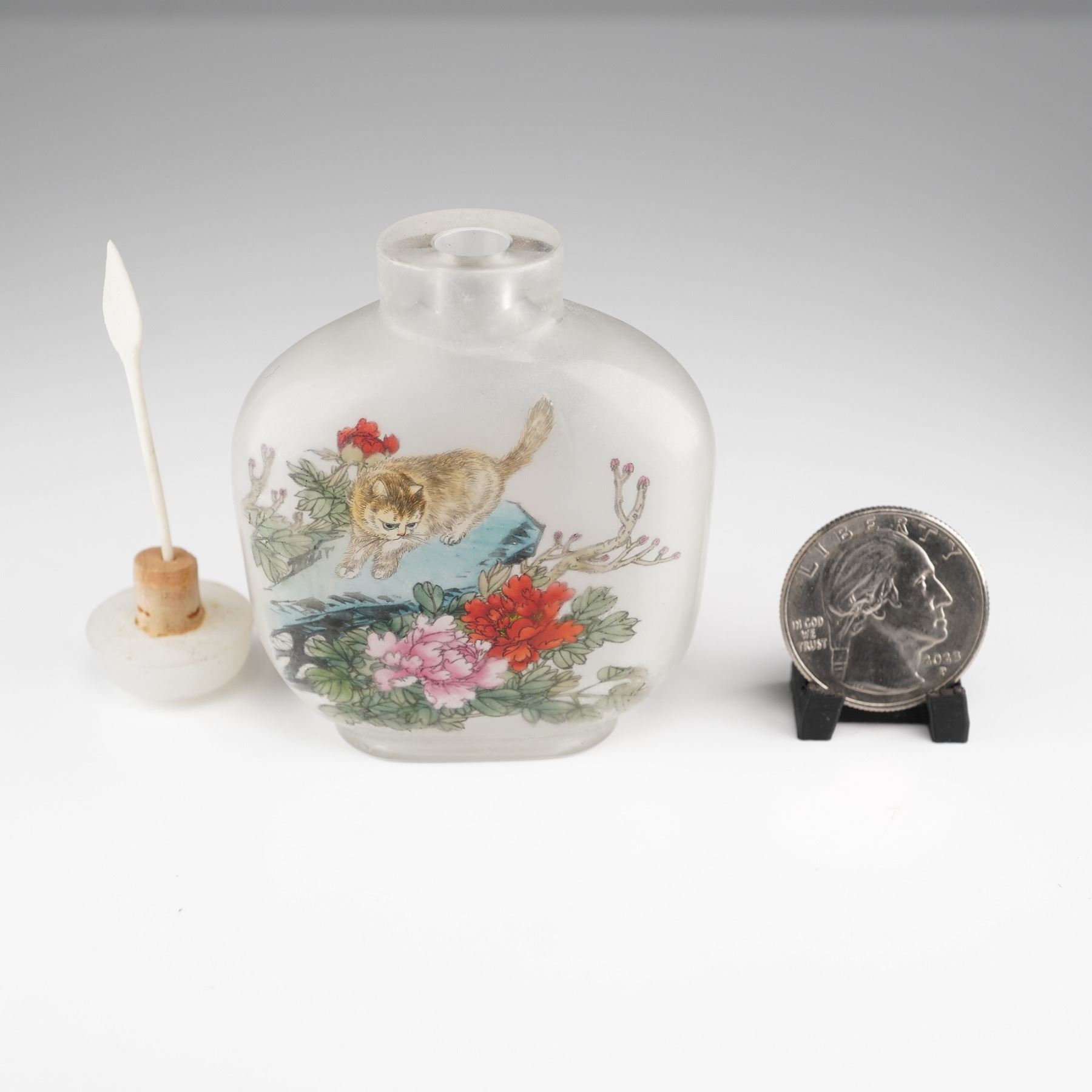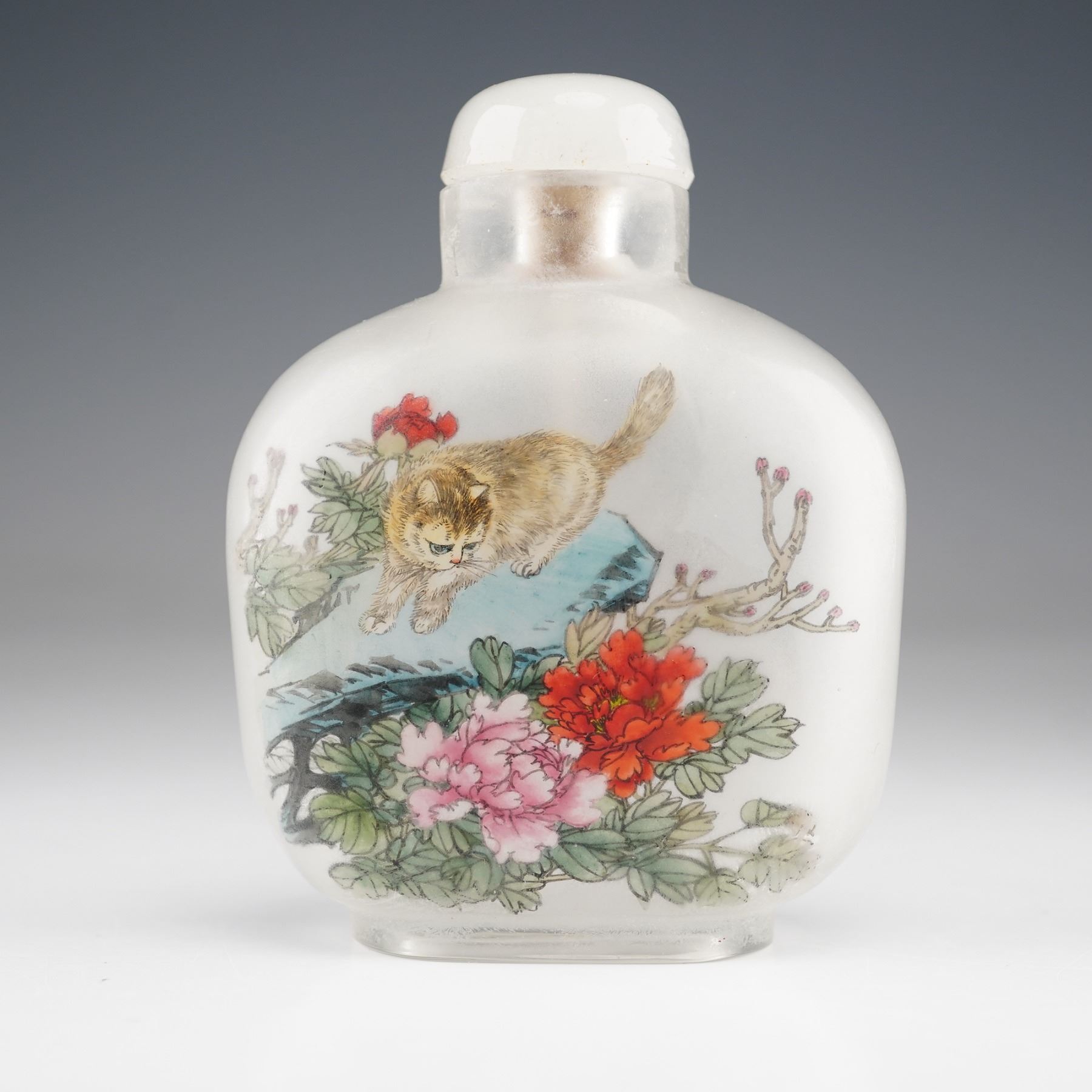 Reverse Painted Glass Snuff Bottle, Cat and Floral Scene