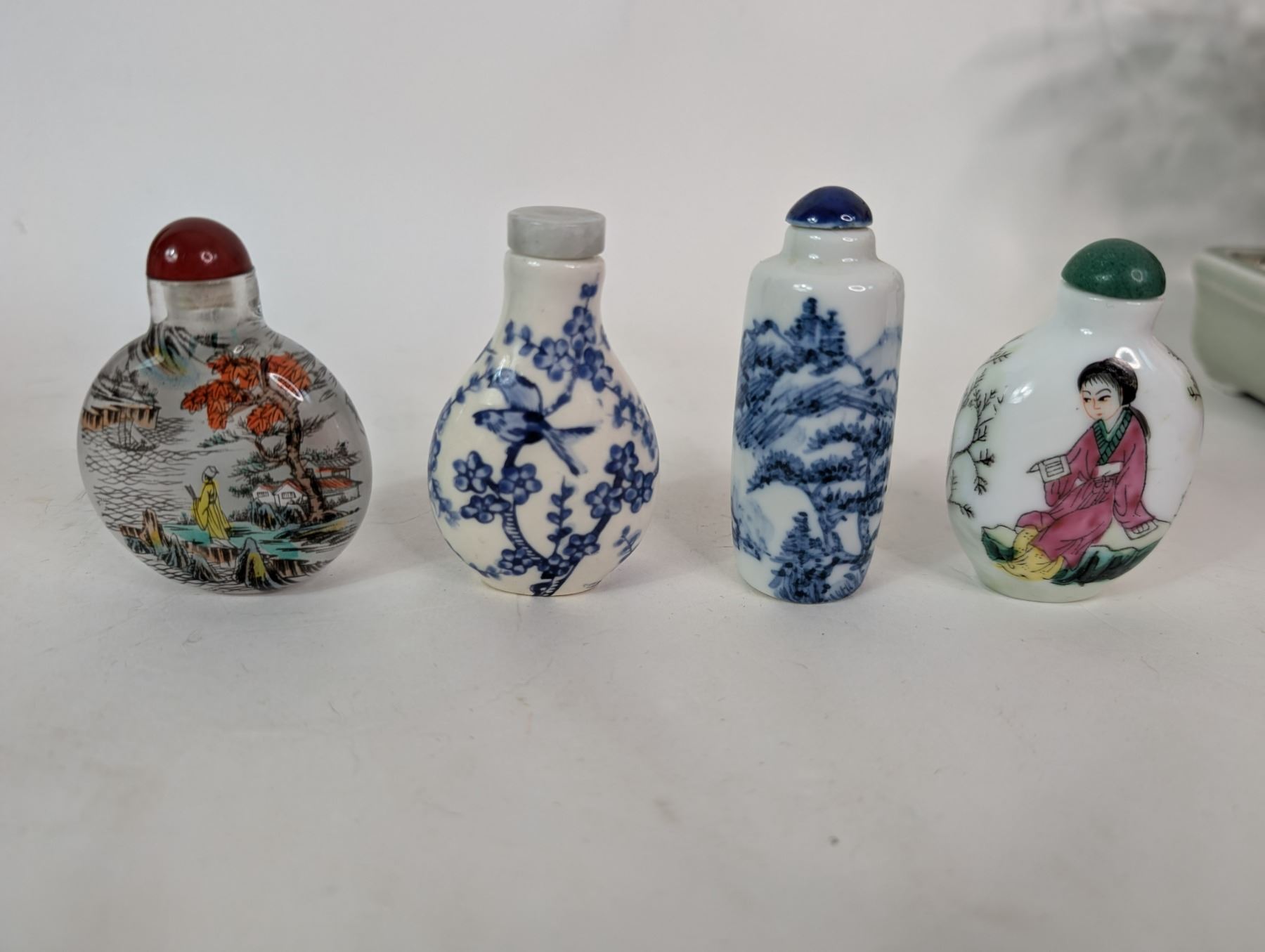 Reverse Painted and Signed Porcelain Stuff Bottle Lot