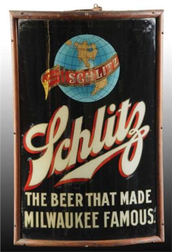 Description 1920s. Rare sign. All original with copper banding and wooden framework on back. Small marks and minor flaking on black background with heavy soiling and light wear. Condition (7.5, Very Good). Size 16" x 25" x 6 - 1/2".