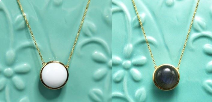 #ReversiblePendant #LabradoriteGlow #WhiteOpalElegance #18KGoldNecklace #MabeGemstones #MinimalLuxury #FineJewelryFind #BidFairExclusive #DualStyleDesign #SubtleStatement