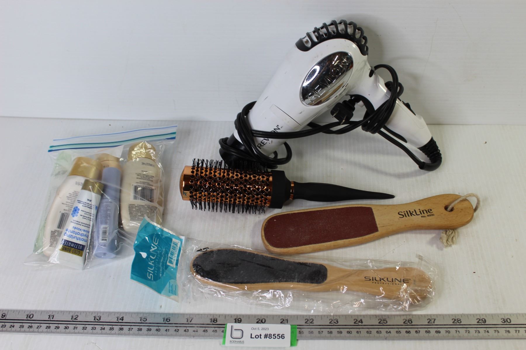 Revlon Hair Dryer (working) - (2) Two Sided Foot Files - Hair Brush - Moisturizing Creams