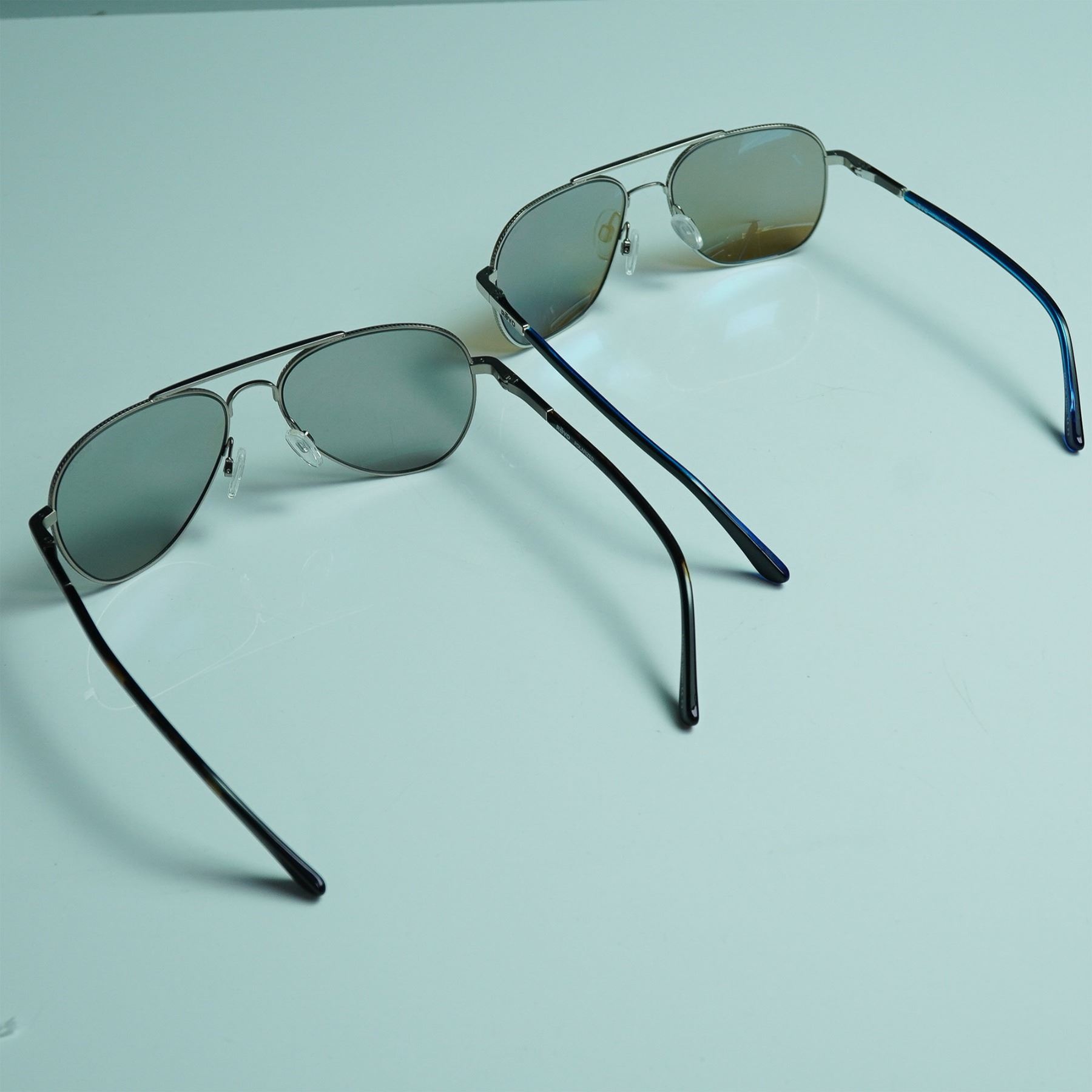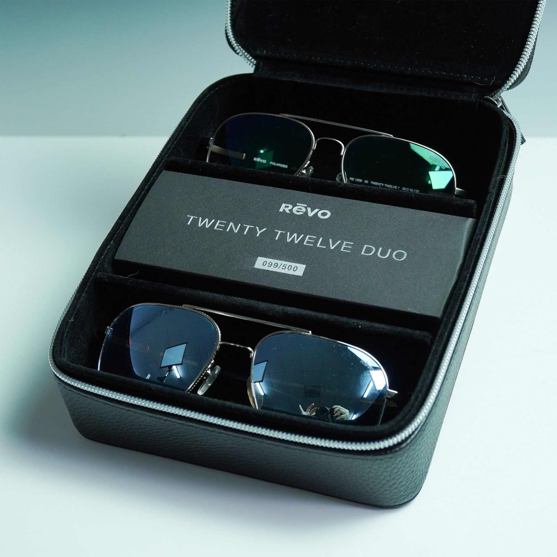 This exclusive Revo Twenty Twelve Duo sunglasses set includes two distinct aviator-style sunglasses, both featuring high-performance polarized lenses for superior glare reduction and clarity. The set includes: Revo Twenty Twelve 1 (RE 1206 00): Featuring a sleek black frame with green mirrored lenses, this model offers a contemporary twist on a classic aviator silhouette. And the Revo Twenty Twelve 2 (RE 1207 03): Designed with a blue metallic frame and blue mirrored lenses, providing a stylish and sporty aesthetic. Both pairs are housed in a premium Revo-branded zippered case, ensuring safe storage and transport.