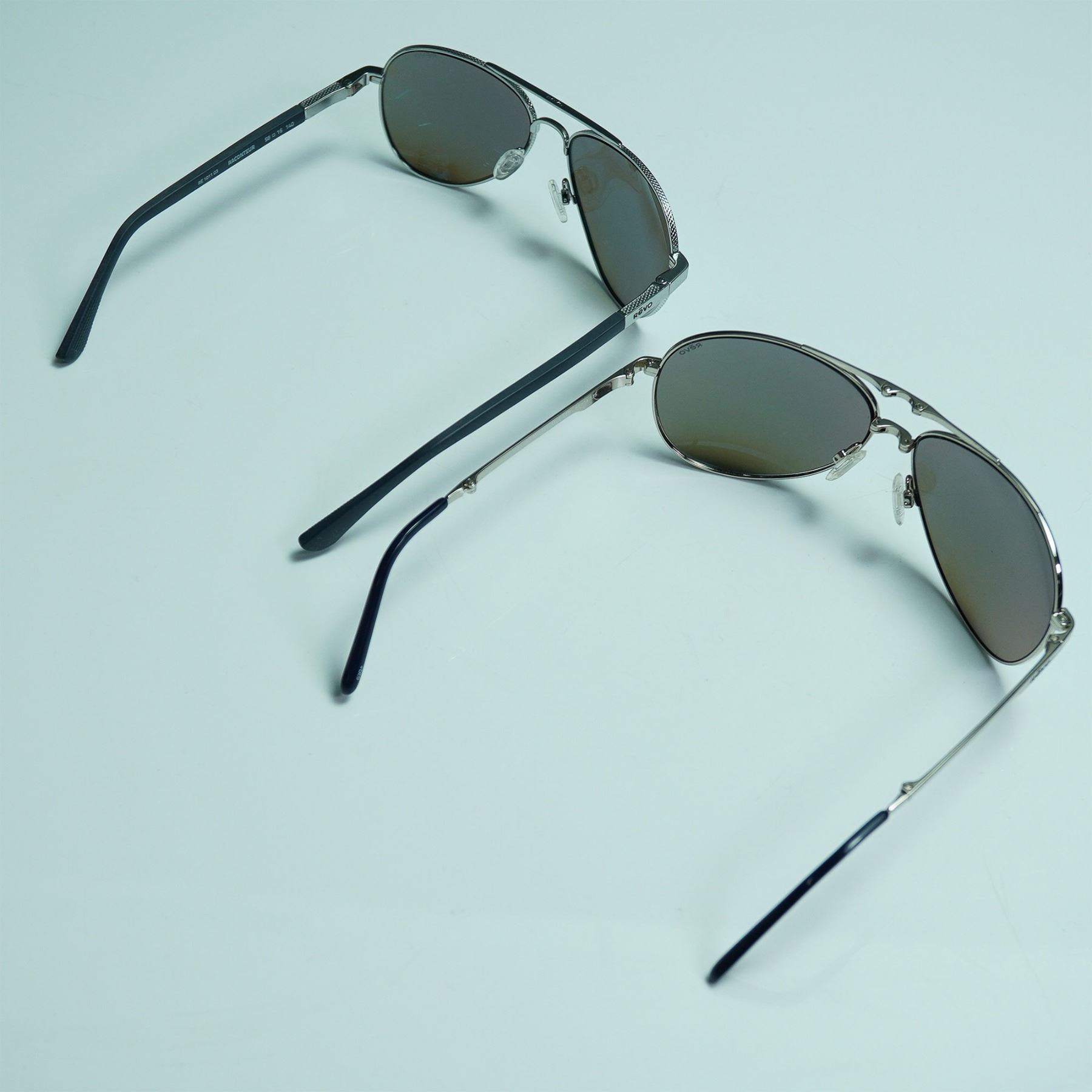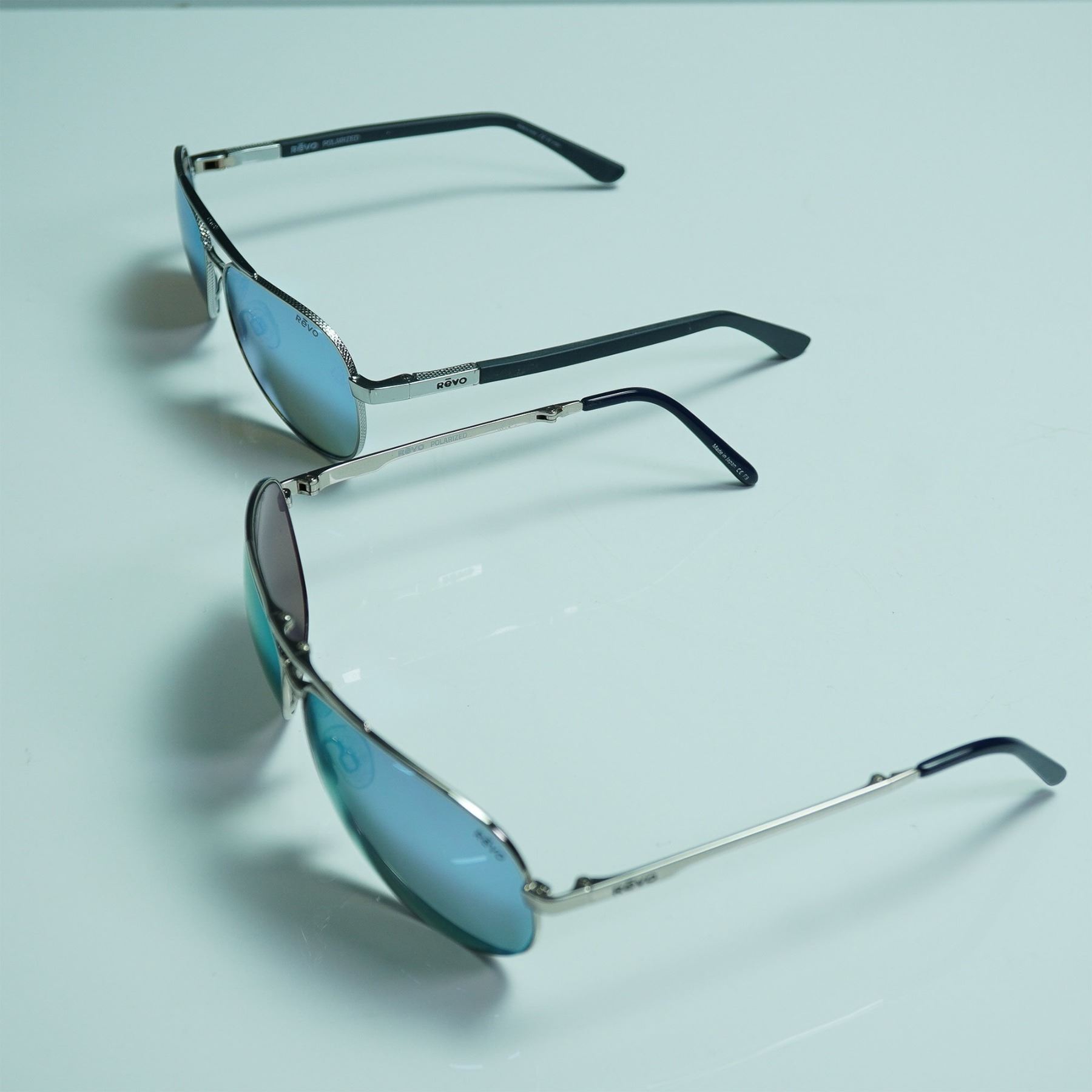 A rare and highly collectible Revo Twenty Twelve Duo Limited Edition sunglasses set, featuring two distinct styles housed in an elegant black zippered case. Limited to only 500 pieces worldwide, this exclusive set includes: Revo Raconteur (RE 1011 03)-A classic aviator style with a sleek silver-tone frame and polarized blue mirrored lenses for enhanced clarity and glare reduction. Features Revo's signature lightweight construction and durable design and Revo Thirty-Five LTD (RE 1985 03)- A bold, modern aviator silhouette with a larger frame and polarized lenses, offering both performance and style.