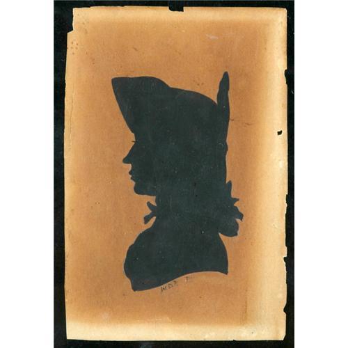<Our item number 130004><B>Revolutionary War Soldier Silhouette Portrait.</B> Portrait of Capt. John Patterson (identified on verso) on 4½ x 3 in. thin, dark brown paper. The artist's initials "W.D.P." are penned at the base of the silhouette, as is the letter "P" and part of another letter (Philadelphia?). Captain Patterson most likely belonged to one of the Pennsylvania regiments because the name John Patterson appears in the Bucks County record of veterans of the Revolutionary War. <BR>Estimated Value $250 - 350. <BR><BR>Our item number 130004<BR><IMAGES><P ALIGN="CENTER"><IMG SRC="http://www.goldbergcoins.net/liveauction/49jpegs/130004.jpg"> </P></IMAGES>
