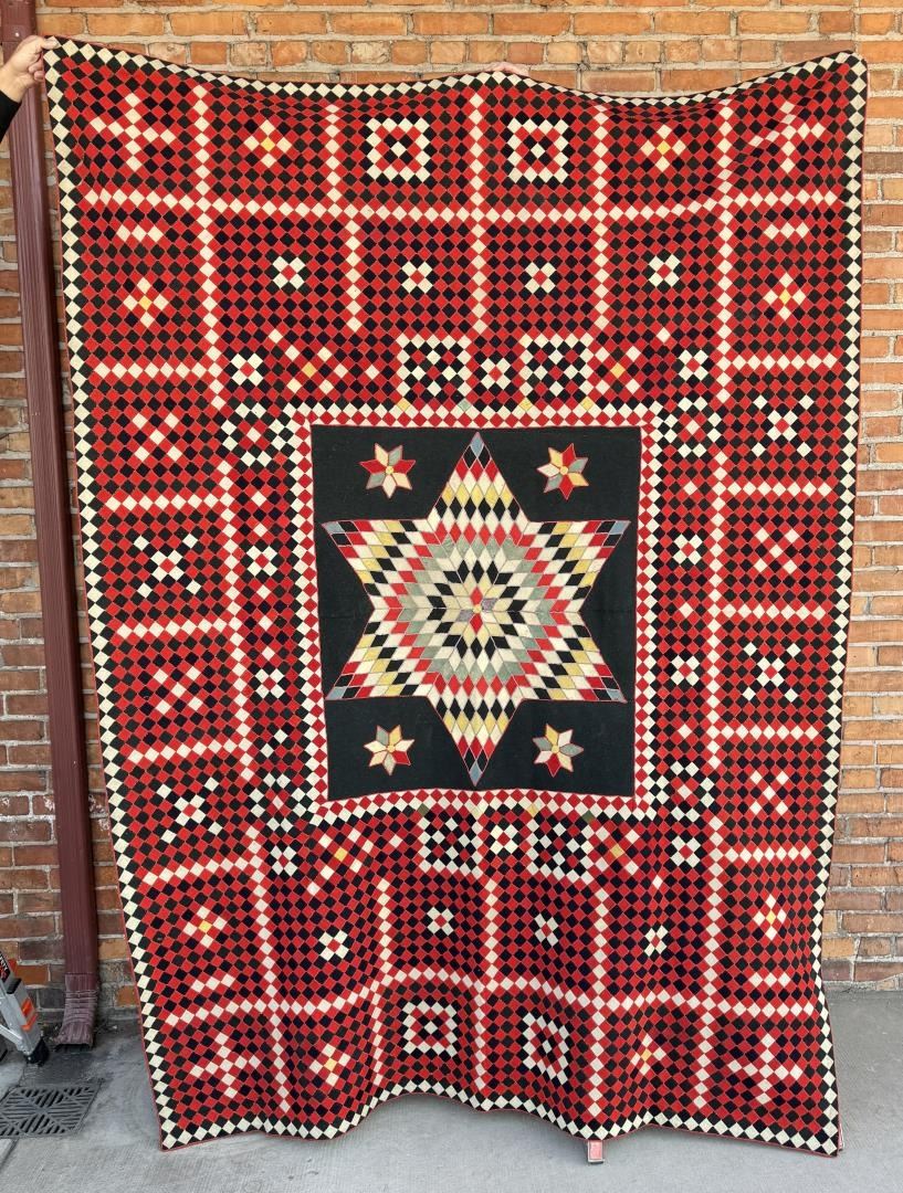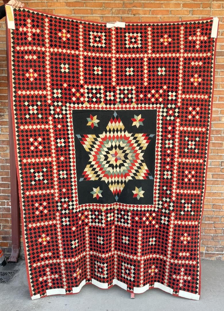 Late 18th Century. More than likely South Carolina, or related geographic area. 69" by 95 1/2". Similar examples can be found on the Selvedge Website in an article titled Regimental Colors.
