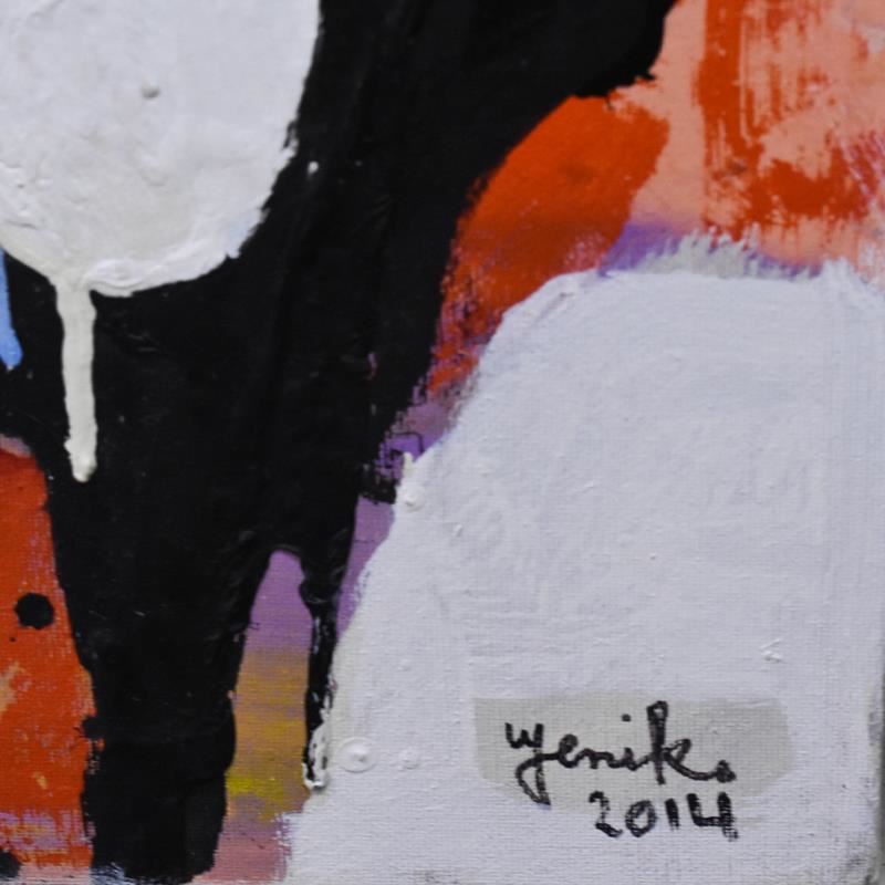 Revolutionary is an original acrylic painting on canvas by Jenik Cook, hand signed by the artist. This piece comes framed. Includes Letter of Authenticity. This piece comes from the artist's personal collection. Measures approx. 29.5" x 41.5" (frame), 28" x 40" (image). ** Please note: There is noticeable wear on the corners and edges of the frame. **