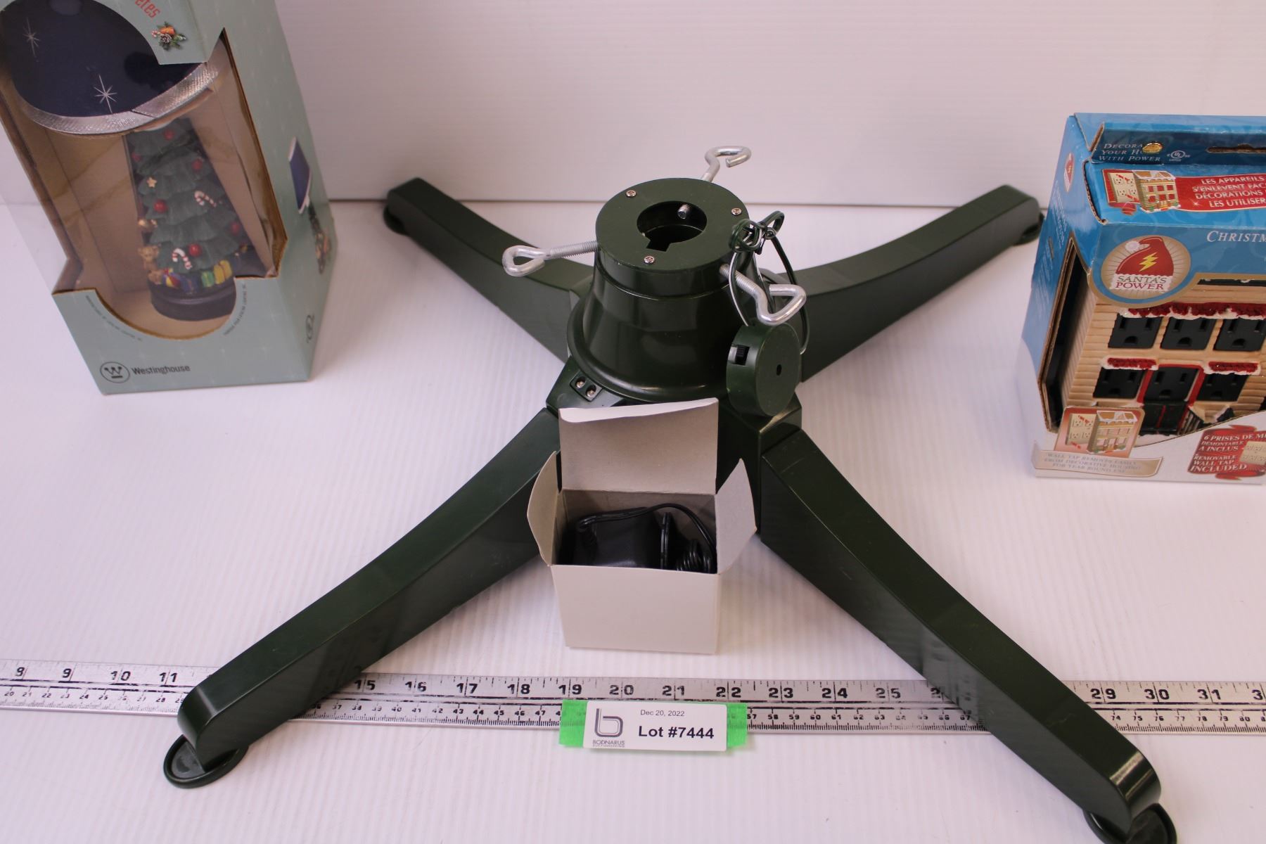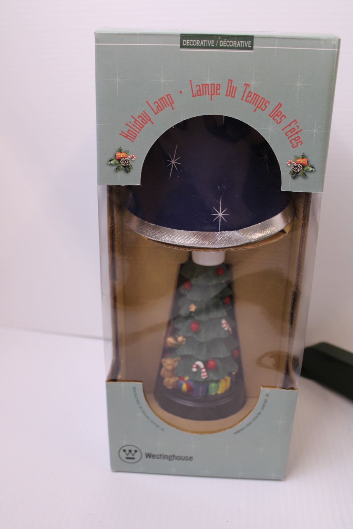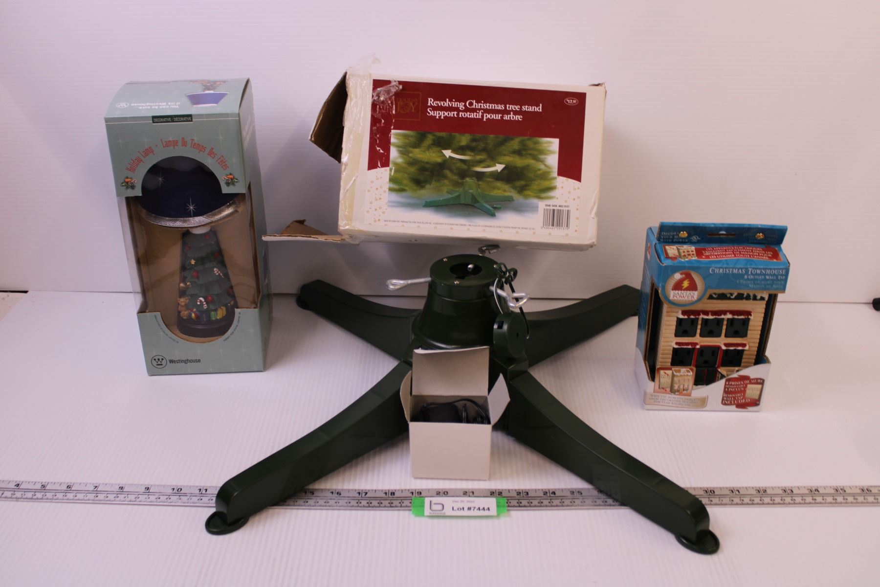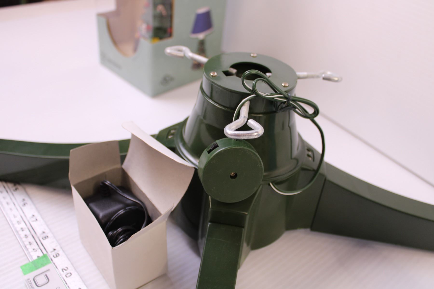 Revolving Christmas Tree Stand + Decorative Outlet Adapter, and Lamp (New Old Stock)