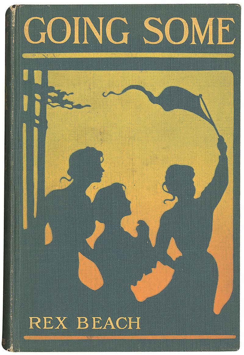 Signed book: Going Some. First edition. NY: Harper and Brothers, 1910. Hardcover, 5 x 7.5, 294 pages. Signed and inscribed on the first free end page, “To Mr. Mark Fenderson with my sincere thanks for his assistance in making this book. Rex Beach, May 17, 1910.” In very good condition, with light toning and pencil notations to signed page, toning and notations to pastedowns, pencil notation to last page, hinges a bit weak, and light wear to covers and spine.