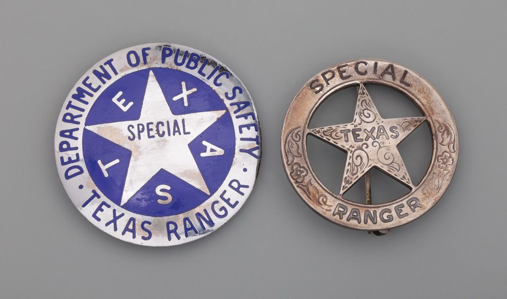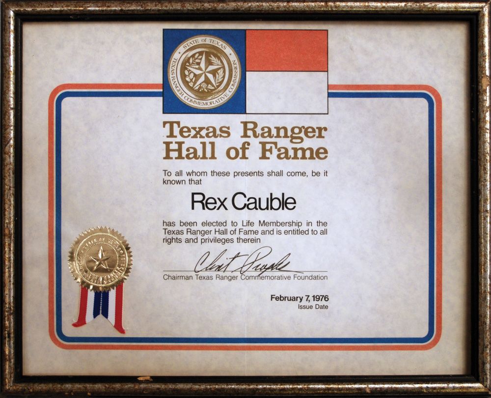 2) Special Texas Department of Public Safety / Texas Ranger Badge, with certificate from the State of Texas commissioning Rex Cauble as "Honorary Director of Public Safety" 1978.