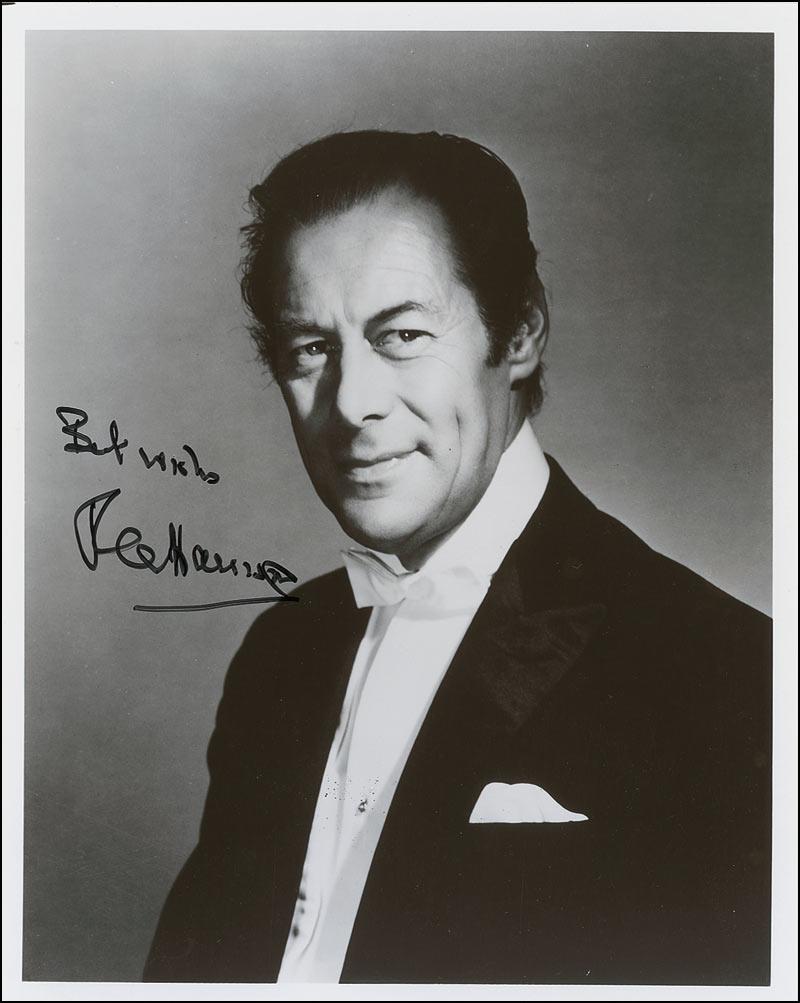 Dashing glossy 8 x 10 photo of Harrison in a white tie and black jacket, signed in black felt tip, “Best wishes, Rex Harrison.” In very fine condition.
