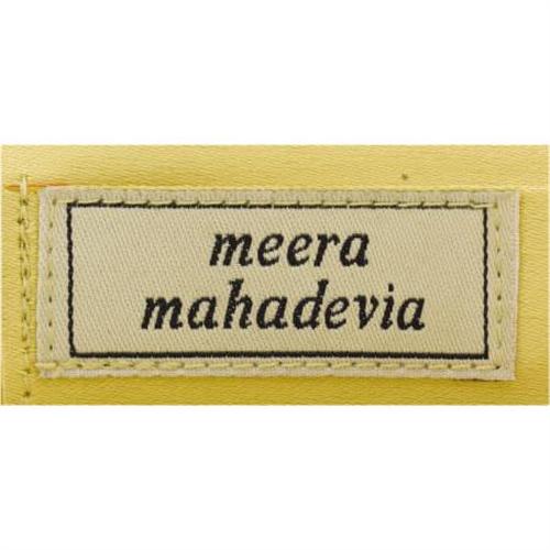 <B>Rhinestone, Bead, Yellow Metal Evening Bag, Meera Mahadeiva</B></I><BR><BR>The ornately decorated evening bag, designed with a floral motif, features rhinestones, beads and fancy thread, applied on gold fabric, completed by a magnetic flap. The evening bag suspends from a multi-strand shoulder strap, consisting of gold and silver toned beads, measuring 18 inches. The evening bag is accompanied by a pouch. Signed Meera Mahadevia. Gross weight 411.00 grams. <BR><I>Dimensions: 5-1/4 inches x 7-1/2 inches x 1-1/4 inches</B></I> <BR><I>*Property of Sharon Bush</B></I> <B>Condition Report:</B> Good condition.<BR>A few of the beads are missing.<BR><BR><b>Shipping:</b> Miscellaneous Collectibles, Smal (<a target="_blank" href="http://www.heritageauctions.com/common/shipping.php">view shipping information</a>)