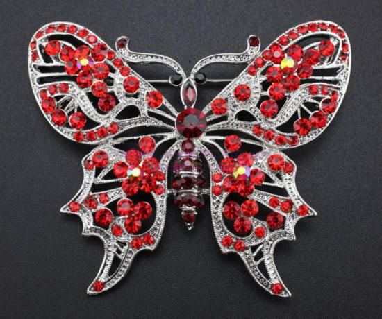 Rhinestone Crystal Butterfly Brooch Pin, measures approx 2.5 in length by 3 width mwf2083