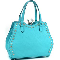 Rhinestone Gold Studded Frame Satchel With Large Jewel Stone