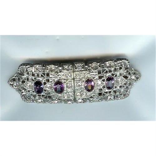 2.3/4" long 3/4" wide this Duet pin separates into two dress clips. Patent #2045385 on back of clip. "C" fastener. Excellent condition. Circa 1940
