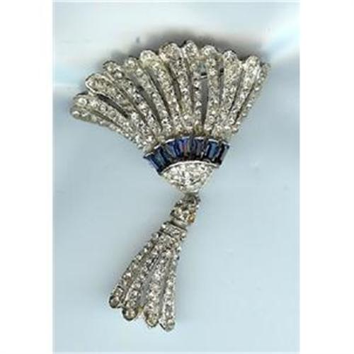 Rhodium Plate on Pot metal Art Deco in design.2.1/2" X 1.1/2". 4 missing stones.