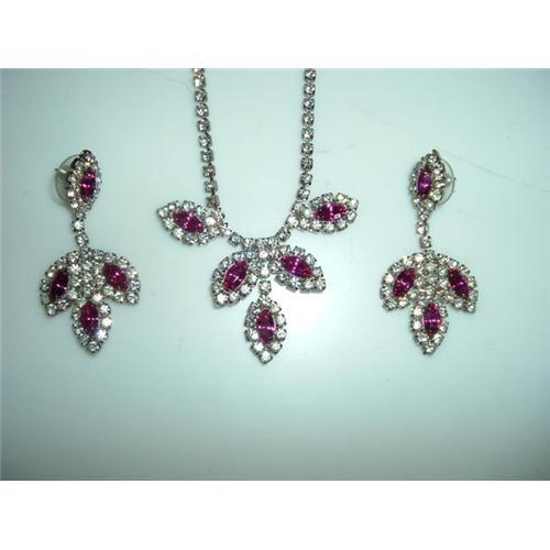 <tr><td>Title:Rhinestone and Cranberry Glass Necklace and</td></tr>