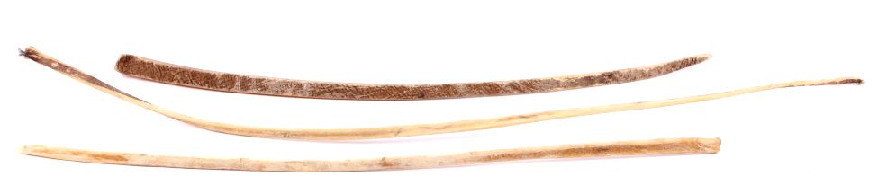 This contains three long strips of genuine Rhino hide. These measure 26.5", 27.5", 38.5". These are rare pieces with the thickest being .75"x1"