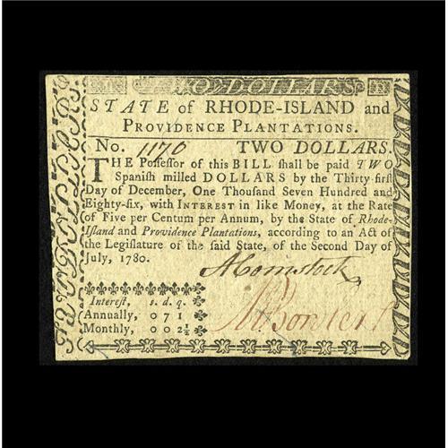 Rhode Island July 2, 1780 $2 Choice About New. A center Rhode Island July 2, 1780 $2 Choice About Ne