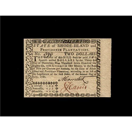 Rhode Island July 2, 1780 $2 Gem New. A flawless exampl Rhode Island July 2, 1780 $2 Gem New.