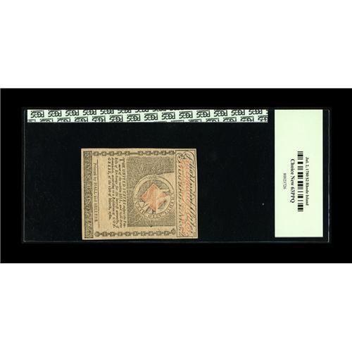 Rhode Island July 2, 1780 $2 PCGS Choice New 63PPQ. A c