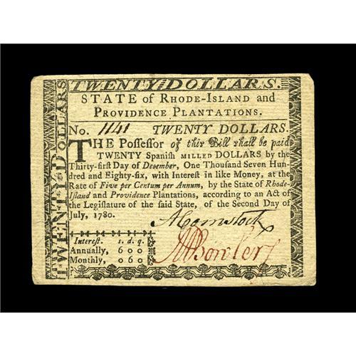 Rhode Island July 2, 1780 $20 Choice About New. A brief Rhode Island July 2, 1780 $20 Choice About N