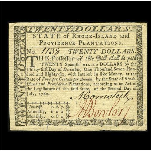 Rhode Island July 2, 1780 $20 Choice About New. M(etcal Rhode Island July 2, 1780 $20 Choice About N