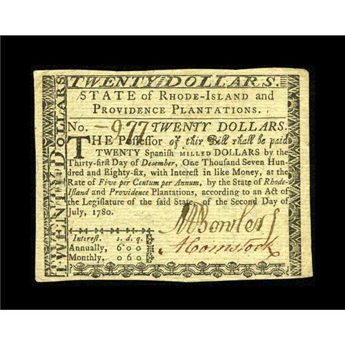 Rhode Island July 2, 1780 $20 New. This is an attractiv