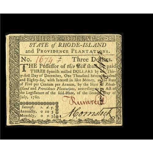 Rhode Island July 2, 1780 $3 Choice New. This note has Rhode Island July 2, 1780 $3 Choice New.