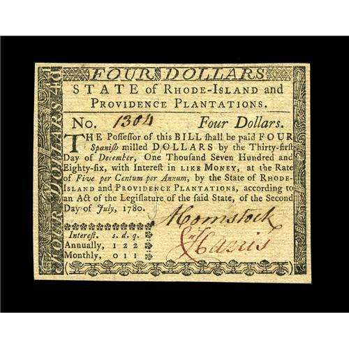 Rhode Island July 2, 1780 $4 Gem New. Nice margins enve Rhode Island July 2, 1780 $4 Gem New.