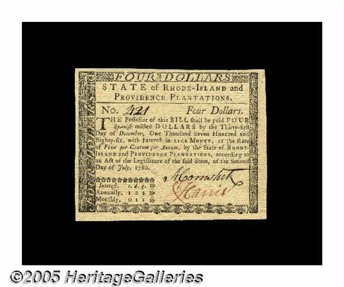 Rhode Island July 2, 1780 $4 Superb Gem New. An u