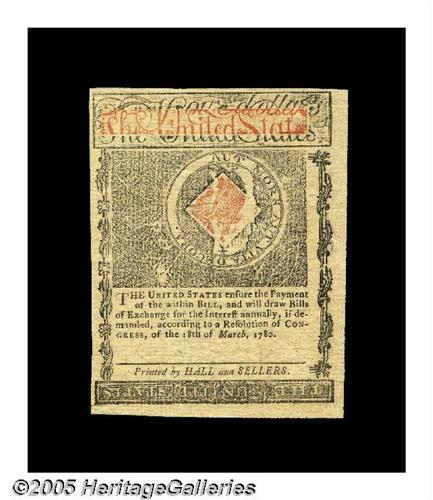 <B>Rhode Island July 2, 1780 $4 Superb Gem New.</B></I> An utterly flawless example numbered and signed on the face, but without its back signature.