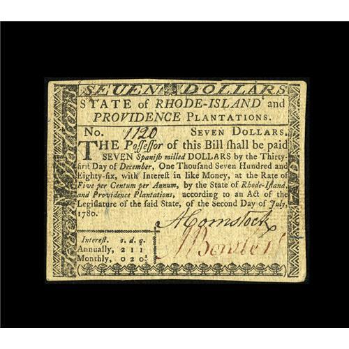 Rhode Island July 2, 1780 $7 Choice About New. A