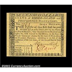 Rhode Island July 2, 1780 $7 Superb Gem New. A simply impeccable piece, cut from the same sheet as t