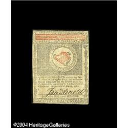 Rhode Island July 2, 1780 $8 About New. Fully signe <B>Rhode Island July 2, 1780 $8 About New.</B></I> Fully signed and issued with the guarantee for the United States signed by J. Arnold. A common note as a Remainder or fully issued and canceled, but fully issued, uncanceled pieces are both scarce and popular. <BR><BR><B>Important notice:</B> Heritage usually auctions material at the rate of 200-250 lots per hour. On some occasions eBay Live bid software or the Internet may not be able to keep up with the pace of the auction. We recommend placing a realistic absentee bid now as insurance to avoid disappointment. Occasionally the auctioneer may eliminate or reject an eBay Live bid, and the auctioneer may also reopen a lot after the close of the eBay live bidding (usually because we missed an audience bid), and may reject your bid even if it shows you as the winning bidder. By bidding via eBay Live, you agree that Heritage may award the lot to another bidder at its sole discretion under the circumstances described above or any other reasonable circumstances. Since eBay bids are not shown to us until we open the lot on the floor, we treat those bids just like floor bids. In most cases the floor responds before the eBay bid is presented to us, due to Internet lag time, so for consistency we have made it a policy that floor bids are always considered first over tie eBay live bids. Also please note that all Heritage lots purchased through eBay Live carry a 20% Buyer's Premium. Please make sure you read the Terms and Conditions before you bid. This lot is being auctioned in conjunction with a live floor auction by Heritage Galleries & Auctioneers. All final auction and invoice information will be supplied by Heritage Galleries & Auctioneers, and all other information should be considered preliminary. Lot:15274