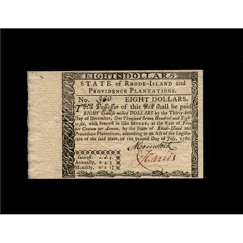 Rhode Island July 2, 1780 $8 Gem New. The left face mar Rhode Island July 2, 1780 $8 Gem New.