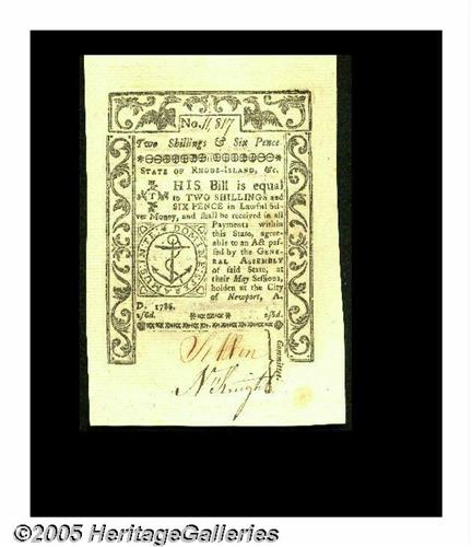<B>Rhode Island May 1786 2s/6d Superb Gem New.</B></I> Bright, fresh, original and simply perfect, with jumbo margins to go along with everything else.