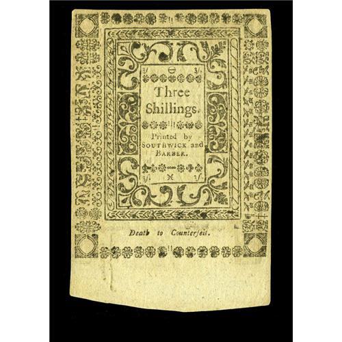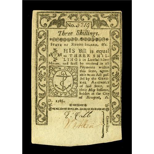 Rhode Island May 1786 3s New. This example which is wel Rhode Island May 1786 3s New.