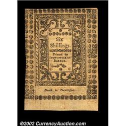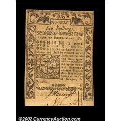 Rhode Island May 1786 6s New. The margins are rather tight, but this is otherwise a very nice exampl