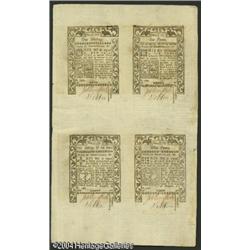 Rhode Island May 1786 Double Sheet of Eight Superb Gem <B>Rhode Island May 1786 Double Sheet of Eight Superb Gem New.</B></I> The sheet has split into two half sheets. There are two notes each of the 1s, 6d, 2s6d, and 9d. All eight notes are well signed, perfect Gems with deep original embossing. 1786 Rhode Islands are among the most common notes in high grade and they have been selling of late in the $250 range when broad margin examples have been cut from sheets. Expect these two half sheets to realize about that. 2 sheets <BR><BR><B>Important notice:</B> Heritage usually auctions material at the rate of 200-250 lots per hour. On some occasions eBay Live bid software or the Internet may not be able to keep up with the pace of the auction. We recommend placing a realistic absentee bid now as insurance to avoid disappointment. Occasionally the auctioneer may eliminate or reject an eBay Live bid, and the auctioneer may also reopen a lot after the close of the eBay live bidding (usually because we missed an audience bid), and may reject your bid even if it shows you as the winning bidder. By bidding via eBay Live, you agree that Heritage may award the lot to another bidder at its sole discretion under the circumstances described above or any other reasonable circumstances. Since eBay bids are not shown to us until we open the lot on the floor, we treat those bids just like floor bids. In most cases the floor responds before the eBay bid is presented to us, due to Internet lag time, so for consistency we have made it a policy that floor bids are always considered first over tie eBay live bids. Also please note that all Heritage lots purchased through eBay Live carry a 20% Buyer's Premium. Please make sure you read the Terms and Conditions before you bid. This lot is being auctioned in conjunction with a live floor auction by Heritage Galleries & Auctioneers. All final auction and invoice information will be supplied by Heritage Galleries & Auctioneers, and all other information should be considered preliminary. Lot:15279