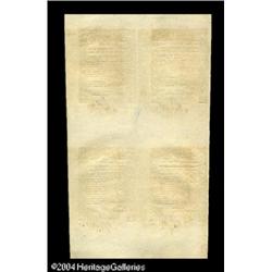 Rhode Island May, 1786 Half Sheet of Four Gem New. A go <B>Rhode Island May, 1786 Half Sheet of Four Gem New.</B></I> A gorgeous half sheet containing four perfect Gem notes. A 6d, 9d, 1s, and 2s6d. A beautiful sheet for display or separating into four perfect Gems. <BR><BR><B>Important notice:</B> Heritage usually auctions material at the rate of 200-250 lots per hour. On some occasions eBay Live bid software or the Internet may not be able to keep up with the pace of the auction. We recommend placing a realistic absentee bid now as insurance to avoid disappointment. Occasionally the auctioneer may eliminate or reject an eBay Live bid, and the auctioneer may also reopen a lot after the close of the eBay live bidding (usually because we missed an audience bid), and may reject your bid even if it shows you as the winning bidder. By bidding via eBay Live, you agree that Heritage may award the lot to another bidder at its sole discretion under the circumstances described above or any other reasonable circumstances. Since eBay bids are not shown to us until we open the lot on the floor, we treat those bids just like floor bids. In most cases the floor responds before the eBay bid is presented to us, due to Internet lag time, so for consistency we have made it a policy that floor bids are always considered first over tie eBay live bids. Also please note that all Heritage lots purchased through eBay Live carry a 20% Buyer's Premium. Please make sure you read the Terms and Conditions before you bid. This lot is being auctioned in conjunction with a live floor auction by Heritage Galleries & Auctioneers. All final auction and invoice information will be supplied by Heritage Galleries & Auctioneers, and all other information should be considered preliminary. Lot:15278