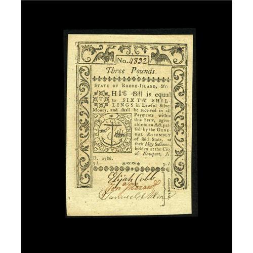 Rhode Island May 1786 L3 Choice About New. This L3 note Rhode Island May 1786 L3 Choice About New.