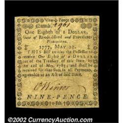 Rhode Island May 22, 1777 $1/8 Extremely Fine. A very nice example of this scarce issue. Each of the
