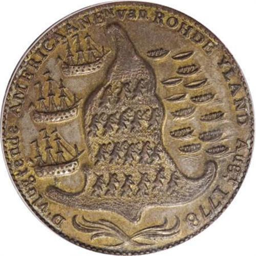 Rhode Island Ship Token, Wreath, Brass MS64 PCGS